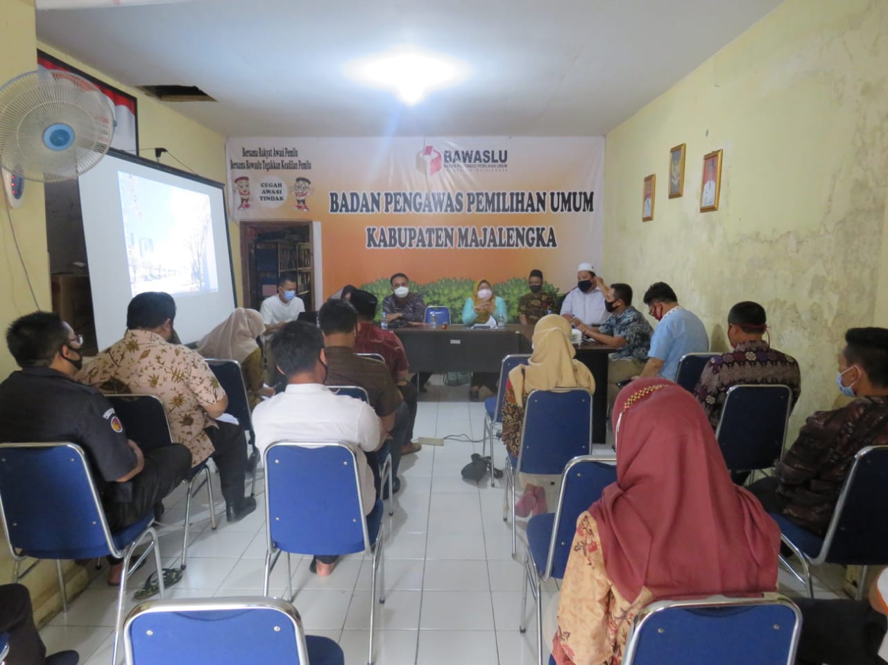 Majalengka (Jum’at, 16/10/2020) - Badan Pengawas Pemilihan Umum Kabupaten Majalengka melaksanakan Rapat Dalam Kantor terkait Pelaksanaan Kegiatan Pengawasan Pemutakhiran DPB. Rapat yang dilaksanakan di kantor Bawaslu Kabupaten Majalengka itu dihadiri Ketua dan Anggota serta Koordinator Sekretariat Bawaslu Kabupaten Majalengka, Kepala Bidang Pengelolaan Informasi Administrasi Kependudukan Dinas Kependudukan dan Pencatatan Sipil Kabupaten Majalengka, Dra. Erna Yulmarita, M.M dan Staf Sekretariat Bawaslu Kabupaten Majalengka.
