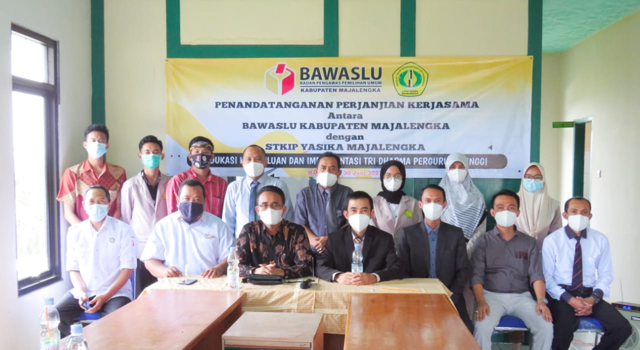 Majalengka- Bawaslu Kabupaten Majalengka melakukan penandatangan kerjasama (MoU) dengan STKIP YASIKA Majalengka tentang Edukasi Kepemiluan dan Implementasi Tri Dharma Perguruan Tinggi. Penandatanganan MoU itu berlangsung di ruang rapat rektorat STKIP YASIKA Majalengka dengan tetap memperhatikan protokol kesehatan, Rabu (30/06/2021).