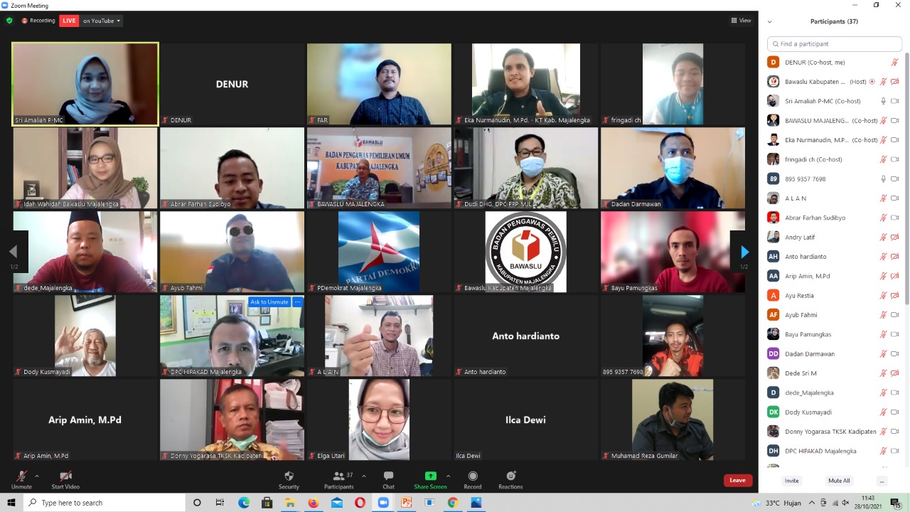 Majalengka – Dalam rangka memperingati Hari Sumpah Pemuda yang ke-93, Bawaslu Majalengka menggelar kegiatan Obrolan Demokrasi (ORASI) Serial #15 dengan mengangkat tema “Refleksi Pemuda Majalengka melihat Kepemimpinan Hasil Pilkada 2018 Menuju Pilkada 2024” melaui daring. Kamis, (28/10/2021).