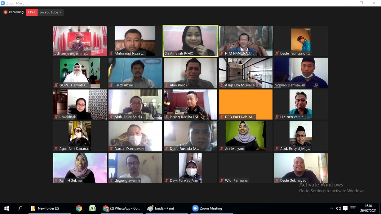 Pendidikan Politik itu adalah Kewajiban Partai Politik, untuk membangun kemajuan Politik dan meningkatkan kesadaran Politik Masyarakat kita. Badan Pengawas Pemilihan Umum (Bawaslu) Kabupaten Majalengka kembali menyelenggarakan Webkusi Orasi Serial 12 dengan mengangkat tema “Pendidikan Politik Bagi Masyarakat pada Masa Pandemi Menuju Pemilu Dan Pemilihan Tahun 2024”, Senin (26/07/2021).