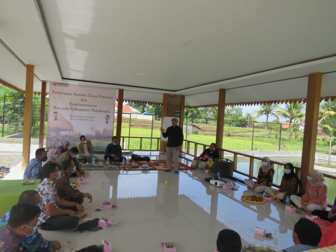 Majalengka (08/12/2020) - Badan Pengawas Pemilihan Umum (Bawaslu) Kabupaten Majalengka mengadakan kegiatan Pembinaan Sumber Daya Manusia (SDM) dan Kesekretariatan bagi seluruh jajaran staf sekretariat, dengan tetap memperhatikan protokol kesehatan. Dilaksanakan di Kafe Kopi Sawah, Jl. Raya K. H. Abdul Halim No. 499, Tonjong, Kecamatan Majalengka, Kabupaten Majalengka.