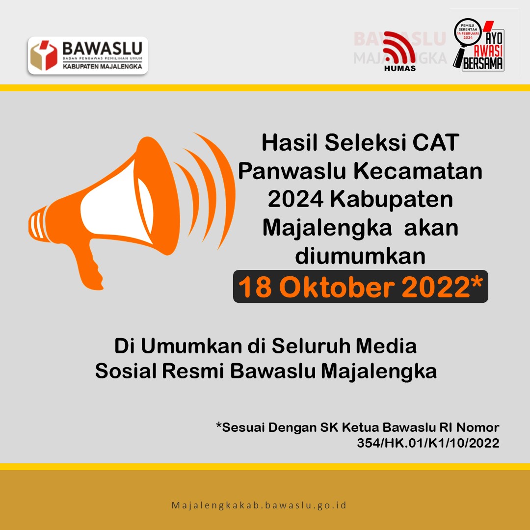 Pengumuman Hasil Tes Tertulis Calon Anggota Panwaslu Kecamatan Untuk Kabupaten Majalengka