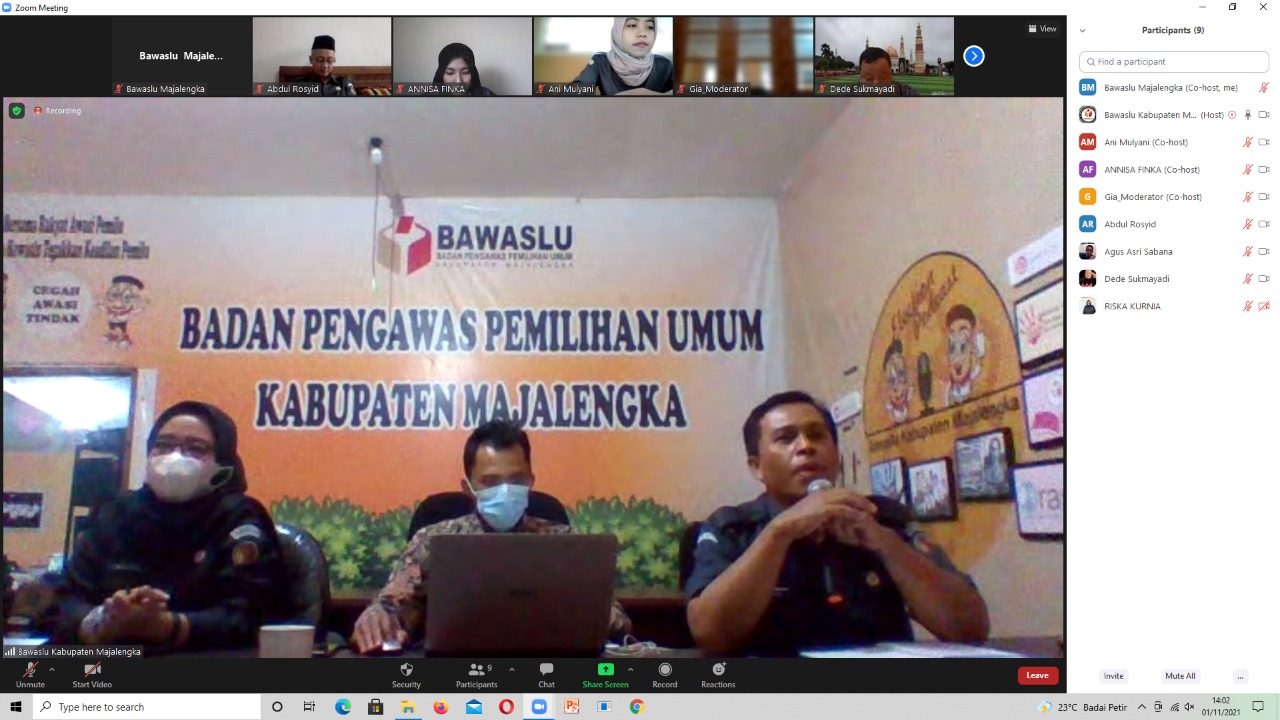 Hadir sebagai narasumber dalam kegiatan kali ini Koordinator Sekretariat Bawaslu Kabupaten Majalengka, Nana Rukmana dan Staf Sekretariat Bawaslu Provinsi Jawa Barat, Annisa Finka. Selain itu turut menghadiri Ketua dan Anggota Bawaslu Kabupaten Majalengka beserta seluruh jajaran Kesekretariatan Bawaslu Majalengka.