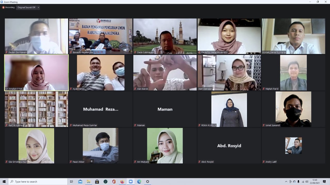 Majalengka - Bawaslu Kabupaten Majalengka menyelenggarakan kegiatan Rapat Dalam Kantor (RDK) Divisi Hukum, Humas, Data dan Informasi. Dengan mengusung tema "Peliputan dan Dokumentasi Kehumasan Untuk Meningkatkan Kualitas Publikasi Kegiatan Bawaslu Dalam Meningkatkan Kepercayaan Publik". dilaksanakan secara luring dan daring, Rabu (22/09/2021).