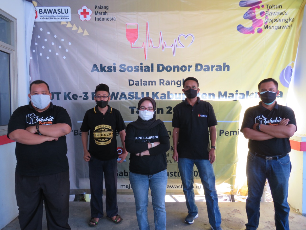 Majalengka — Dalam rangka menyambut hari jadi Bawaslu Kabupaten/Kota yang ketiga, Bawaslu Kabupaten Majalengka menggelar aksi donor darah di Kantor Palang Merah Indonesia (PMI) Majalengka yang bertempat di Jl. Raya K H Abdul Halim No.313, Majalengka, Sabtu (14/8/2020).