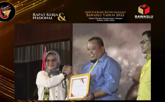 [et_pb_section fb_built="1" _builder_version="3.22.1"][et_pb_row _builder_version="3.22.1"][et_pb_column type="4_4" _builder_version="3.22.1"][et_pb_text _builder_version="3.22.1"]Dalam kegiatan Rapat Kerja Nasional dan Anugrah Kehumasan Bawaslu Tahun 2022 yang digelar di Hotel Gran Senyiur Balik